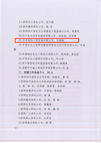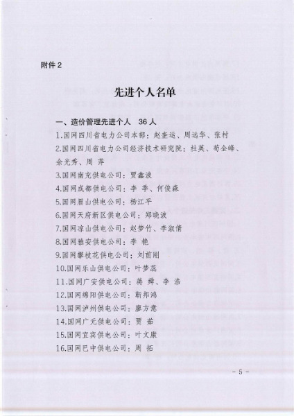 先進單位和(hé)個(gè)人(rén)——國網四川電(diàn)力建設定額站:2019年度四川電(diàn)力工程造價與定額…